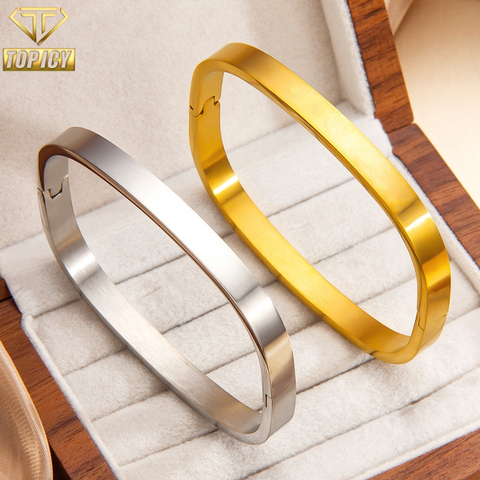 18K Gold Plated Stainless Steel Women Bracelet 2025 Trendy Square Versatile Bracelet Minimalist Stylish Bangle