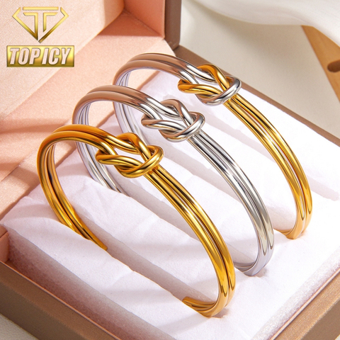 18K Gold Plated Stainless Steel Bracelet for Women Open Cuff Design with Knot Detail Luxury Stylish