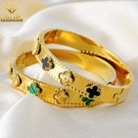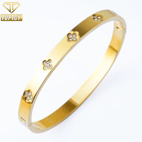 2025 Trendy Womens Clover Zircon Bracelet Fashion Minimalist Bangle 18K Gold Plated Stainless Steel Bracelet Wholesale