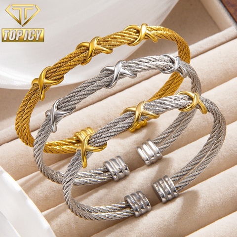 Minimalist Jewelry for Women 2025 Fashion Daily Wear Trendy Accessories Best Selling Stainless Steel Wire Rope Open Bangle