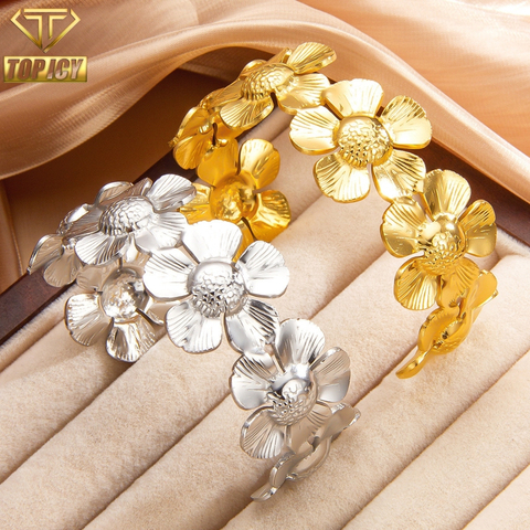 Trendy Best Selling Flower Bangle Geometric Minimalist Cool Style Flower Stainless Steel Elegant Women Bracelet
