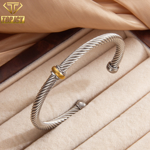 Trendy Open Twist Bracelet Women 2025 European American 18K Gold Plated Two Tone Adjustable Minimalist Stainless Steel Bangle
