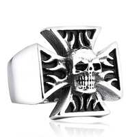 Vintage Gothic Skull Ring for Men Stainless Steel Biker Jewelry Punk Style Titanium Steel Finger Ring Wholesale