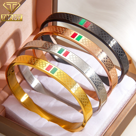 Trendy Red Green Plaid Bangle European American Minimalist Classic Style Stainless Steel Bracelet Elegant Stylish
